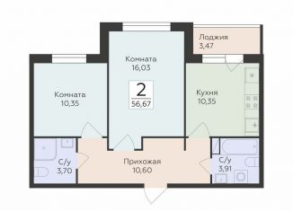 • Продается 2-ком. квартира, 56.7 м2, Воронеж