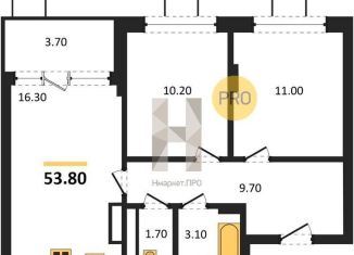 Двухкомнатная квартира на продажу, 53.8 м2