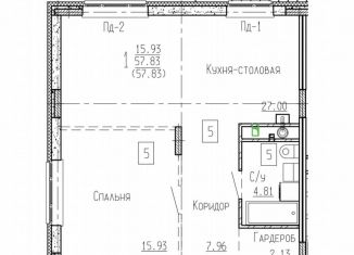 Двухкомнатная квартира на продажу, 60.4 м2