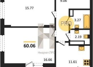 Двухкомнатная квартира на продажу, 60.1 м2