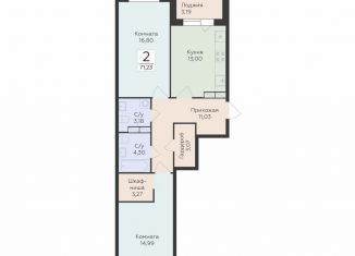 • Продам 2-ком. квартиру, 71.2 м2, Воронеж