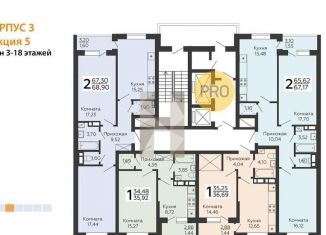 • Продам 2-ком. квартиру, 66.4 м2, Воронеж, улица Пескова, 6