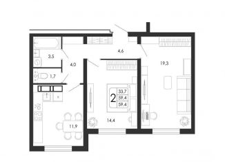 2-комнатная квартира на продажу, 59.4 м2, улица Загоровского, 5/1