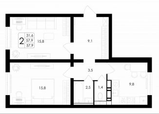 Общая площадь: 57.9 м2