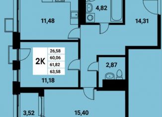 Продажа двухкомнатной квартиры, 60.4 м2