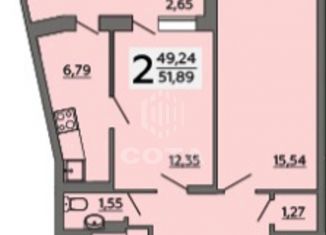 Продается двухкомнатная квартира, 51.9 м2