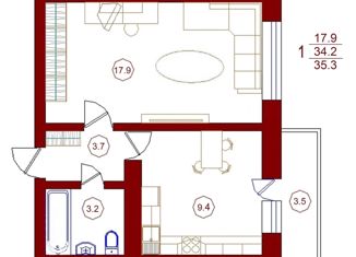Общая площадь: 35.3 м2