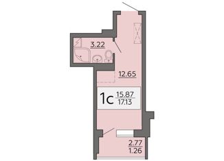 1-комнатная квартира на продажу, 17.13 м2
