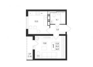 1-комнатная квартира на продажу, 34.9 м2