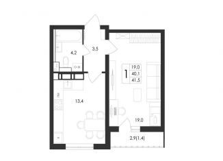 Однокомнатная квартира на продажу, 41.5 м2