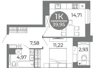 Продажа однокомнатной квартиры, 39.9 м2