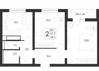 Общая площадь: 53.1 м2