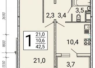 1-комнатная квартира на продажу, 42.5 м2, улица Артамонова, 34Ж