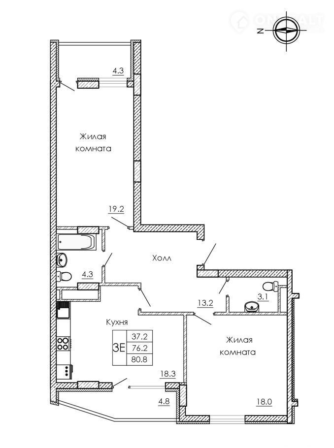 Общая площадь 80.8 м2