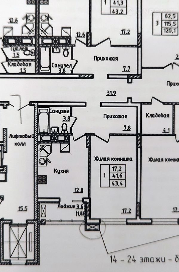 Общая площадь 43.4 м2