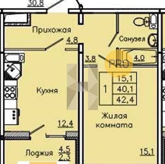Общая площадь 42.4 м2