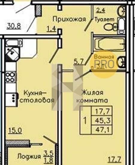 Общая площадь 47.1 м2