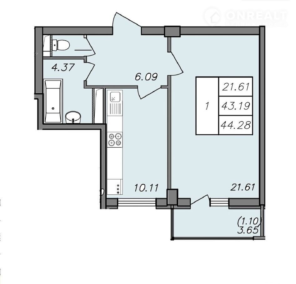 Общая площадь 41 м2