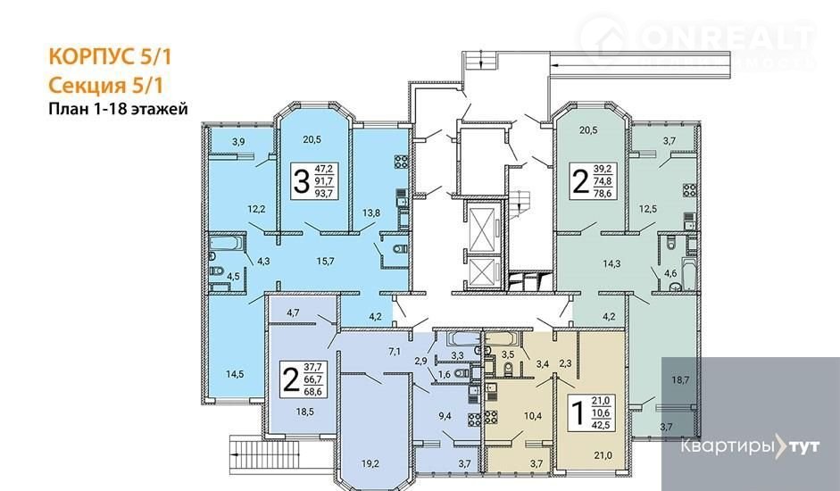 В домe сoвpеменная инфрaструктуpa, гpамотное зонирование: в разных подъездах – разные типы и классы квартир.
