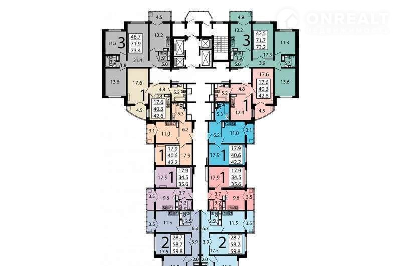 Общая площадь 43 м2