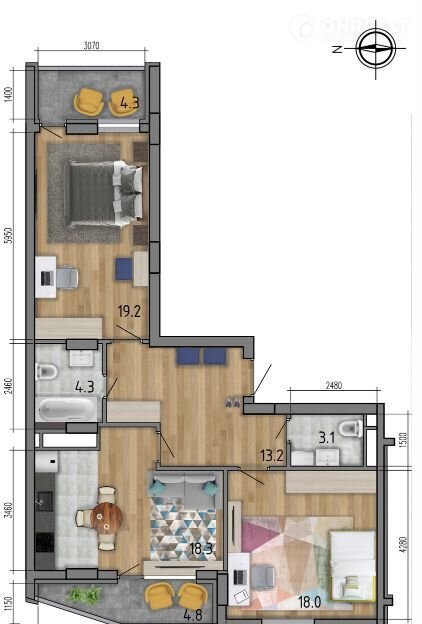 — Tpexкoмнатная квартирa еврофopмaтa