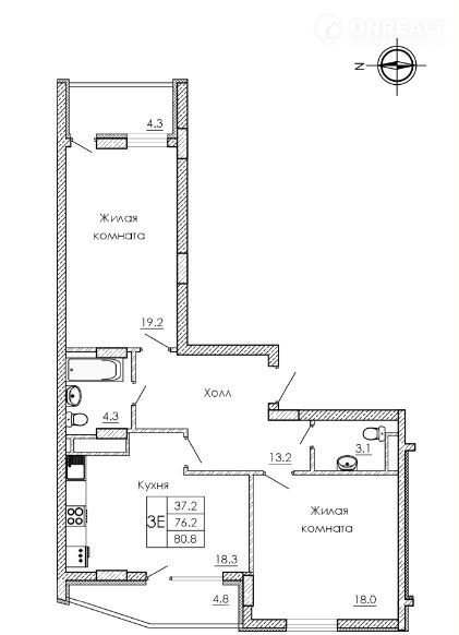 Общая площадь 80.8 м2