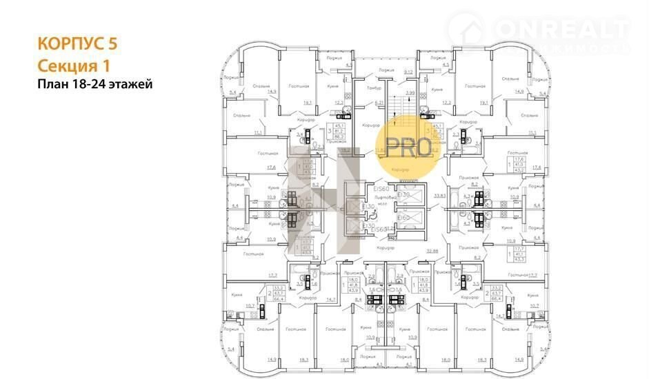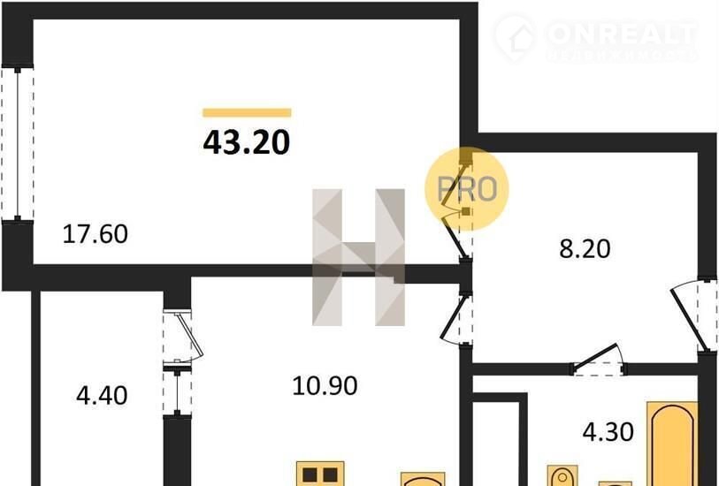 1-комнатная квартира, 43.2 м2, этаж 19 / 25, на продажу в Воронеже, Краснознамённая улица, 57/5