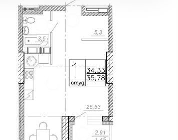 Общая площадь 35.8 м2
