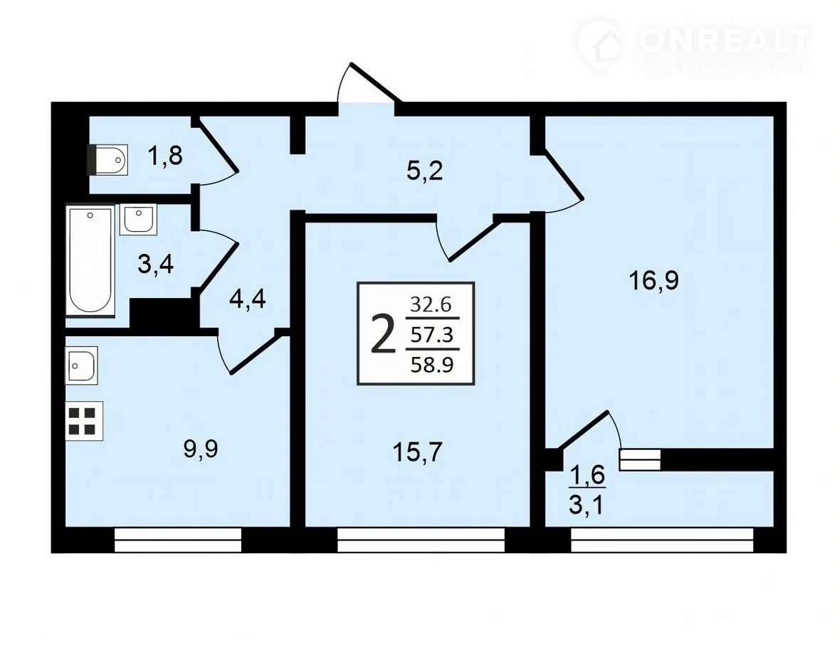 Общая площадь 58.9 м2