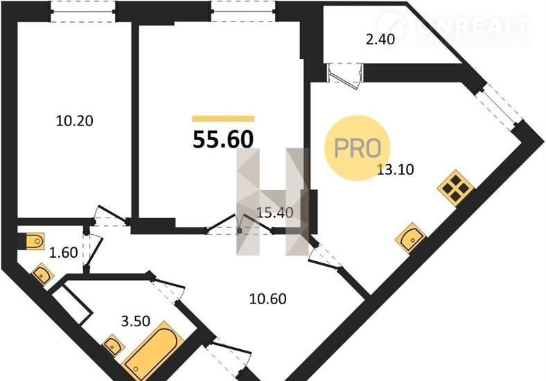 Общая площадь 55.6 м2