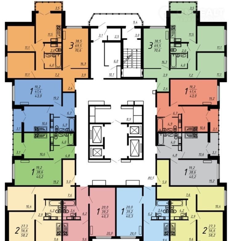 Общая площадь 38.9 м2