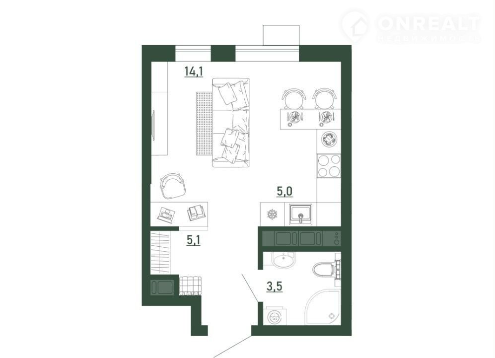 Жилая площадь 14.1 м2