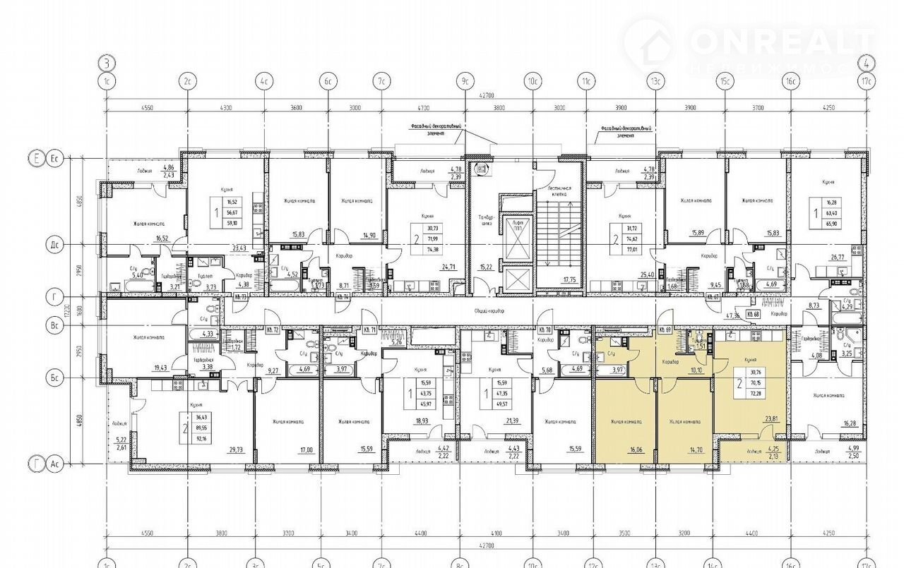 2-комнатная квартира, 72.3 м2, этаж 8 / 9, на продажу в Воронеже