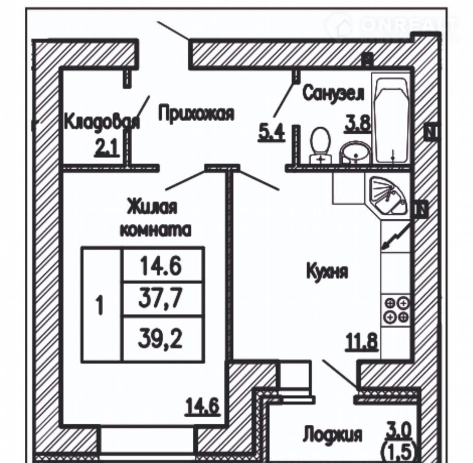 Общая площадь 39.2 м2