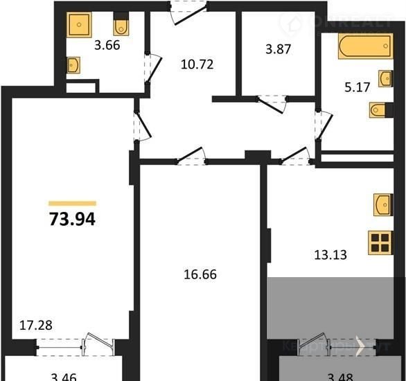 Общая площадь 73.9 м2