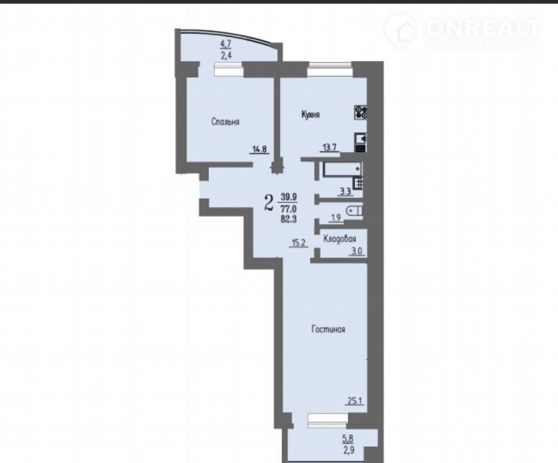 Общая площадь 82.3 м2