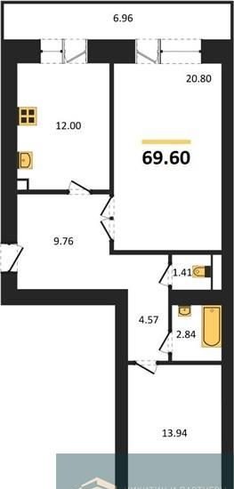 Общая площадь 69.6 м2