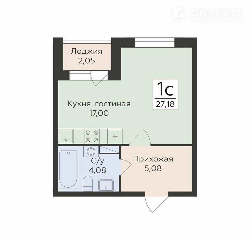 Общая площадь 27.2 м2