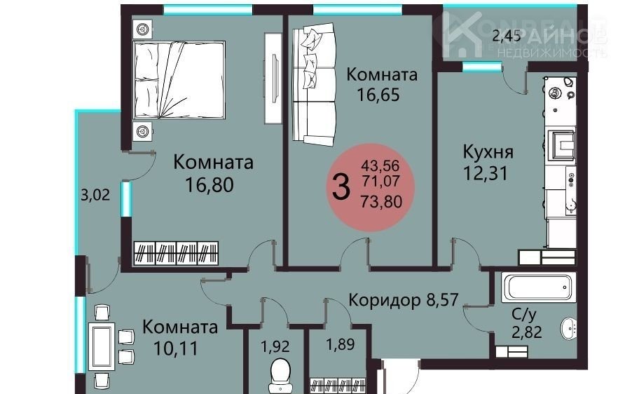 Количество комнат 3