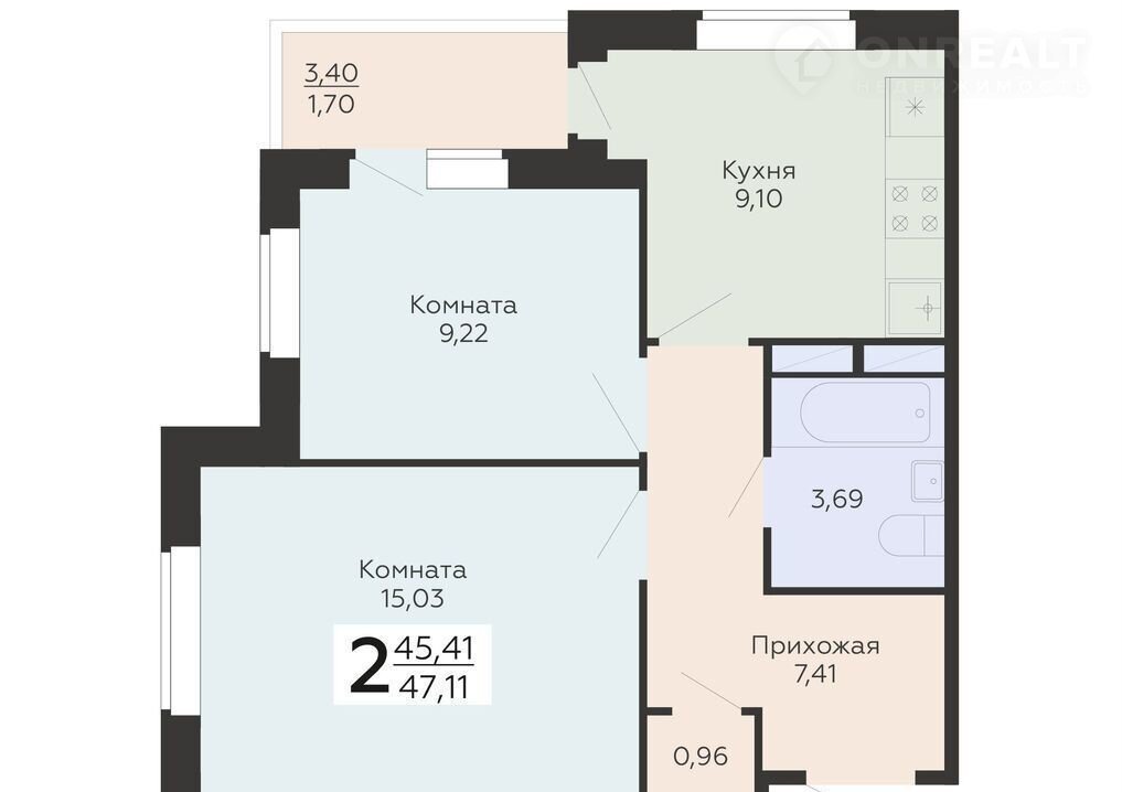 Общая площадь 47.1 м2