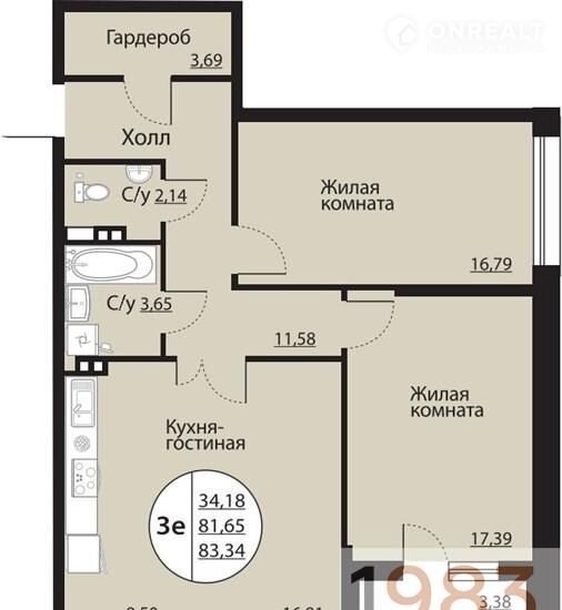 2-комнатная квартира, 83.3 м2, этаж 3 / 24, на продажу в Воронеже, Московский проспект, 138