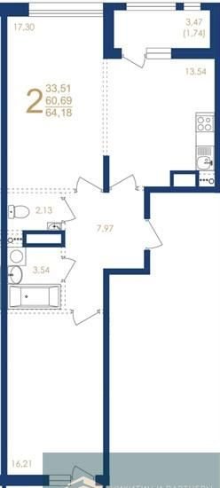 Общая площадь 64.2 м2