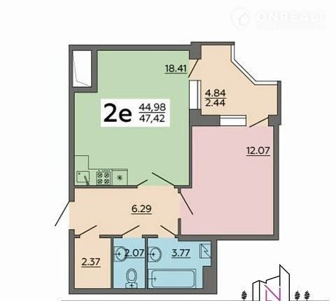 Общая площадь 47.4 м2