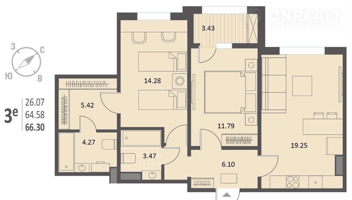 Общая площадь 66.3 м2