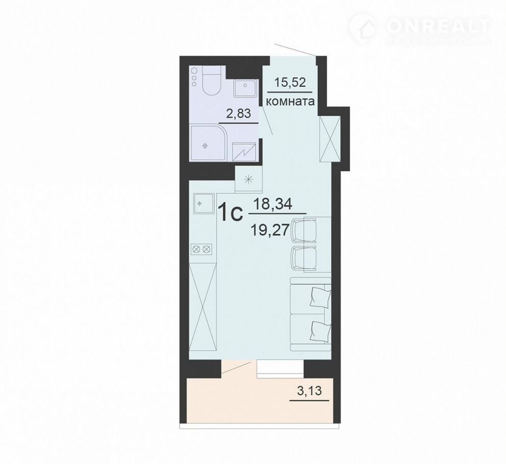 Общая площадь 19 м2