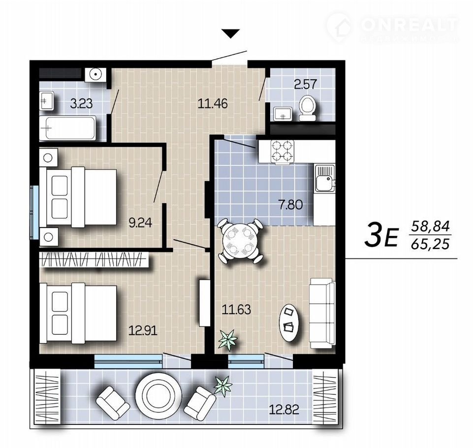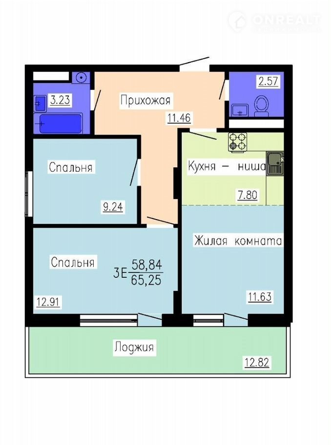 Общая площадь 65.3 м2