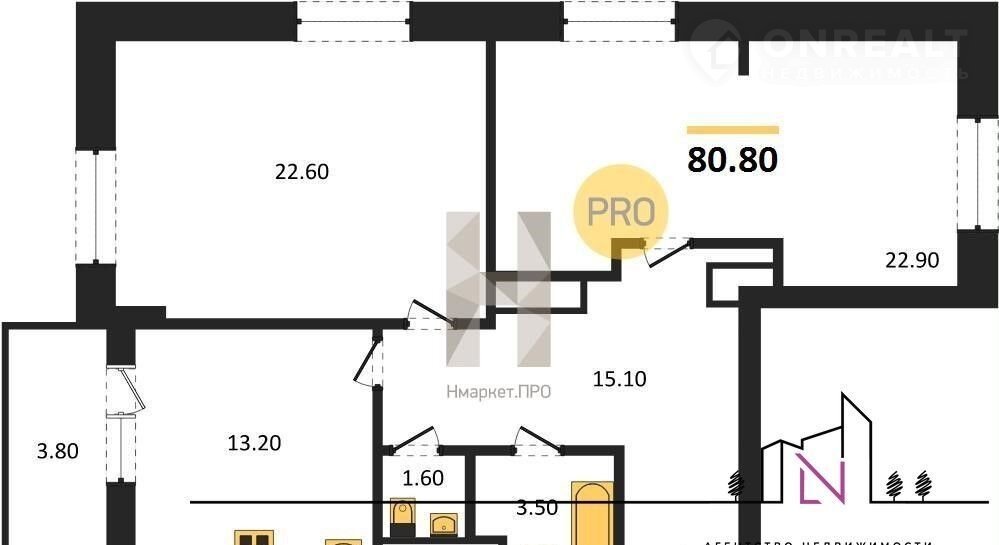 Общая площадь 80.8 м2