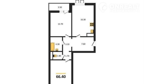 Общая площадь 66.4 м2