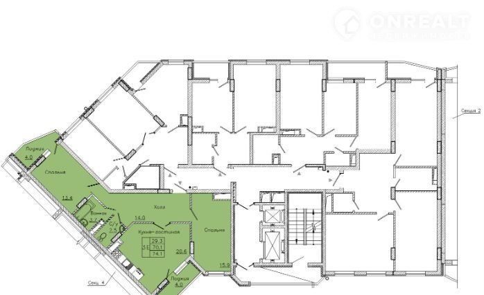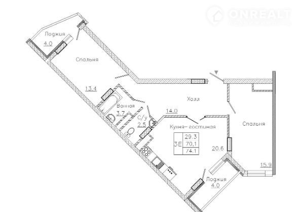 Общая площадь 74.1 м2