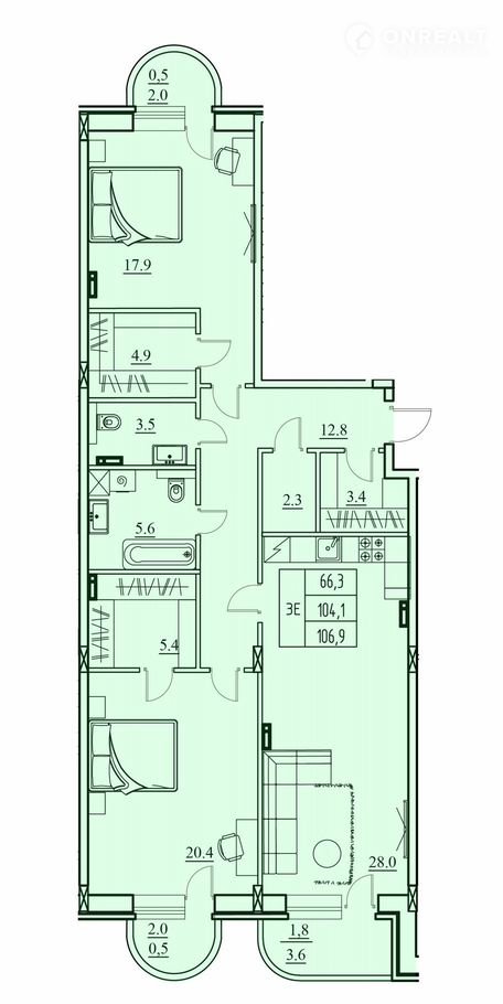 Общая площадь 106.9 м2